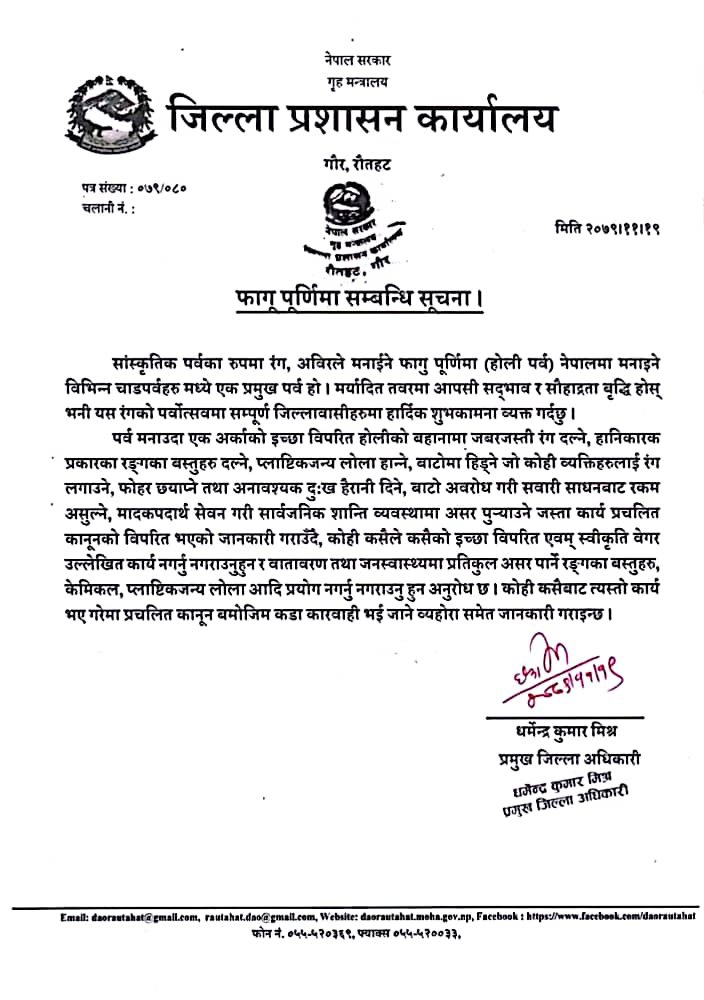 इच्छाविपरीत कसैलाई रंग नदल्न नगरवासीसंग अनुरोध