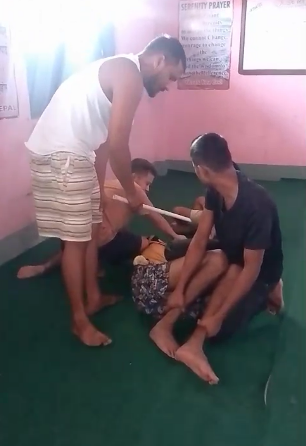 तीन जनाले एक व्यक्तिलाई लडाएर समाउँछन् भने अर्का एक व्यक्तिले पैतलामा लट्ठीले कुटपिट गरेको देखिन्छ । ४१ सेकेन्ड लामो भिडिओमा कुटपिटबाट व्यक्ति कराएको आवाज नसुनिओस् भन्ने हिसाबले पृष्ठभूमिमा संगीत बजाएको बजाएको सुनिन्छ ।
